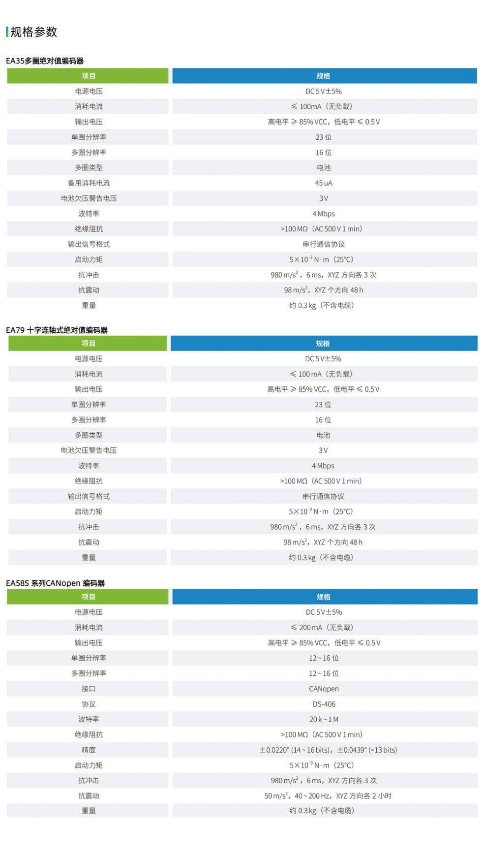 绝对值编码器是为每一个轴的位置提供一个编码数字值,无论编码器是否在转动,都可以读出编码器的当前位置或角度信号,与增量型编码器相比,有效避免掉电信号丢失问题。