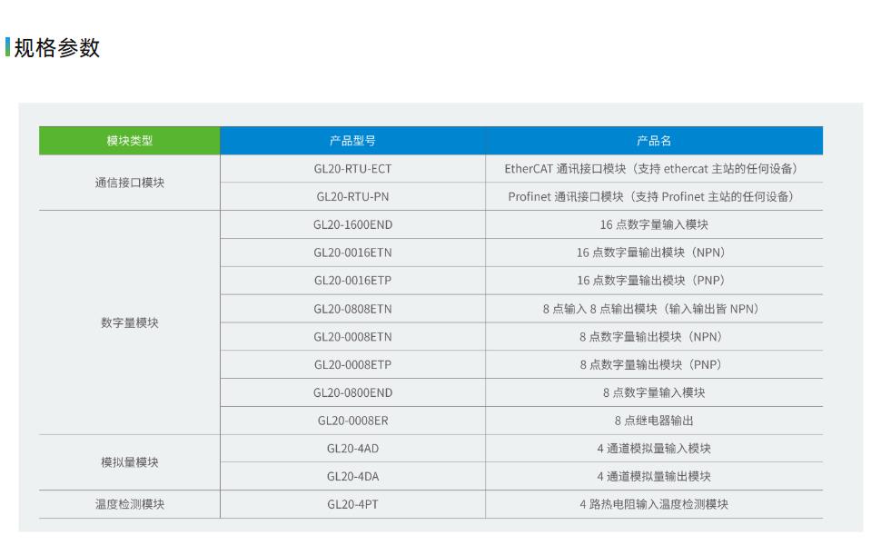 GL20系列刀片式模块是汇川技术推出的新一代模块,适用于常见的总线网络,可以在您的系统中迅速地、可靠地采集输入和输出信号。同时它具有薄至12mm的机身,可达到微秒级别的响应速度,充满灵活性的IO系统和更加稳定的结构设计等特点。GL20系列刀片式模块是未来几年自动化解决方案中很好地选择。安装便利,具有良好的连续运行和高响应速度的能力,GL20刀片式模块在不同行业的碰撞,不断完善各领域的信息,丰富的点数和类别让您拥有更多的定制化选择。