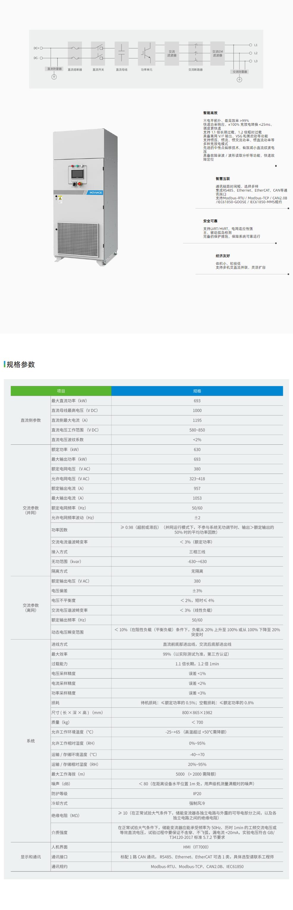 IES1200-C-04-630-SQC为IES系列直流1000V储能变流器,该变流器采用模块化设计,具有高响应、高功率密度、高集成度、高可靠性、易于维护等特点,适用于多个电压等级,用户可根据需求进行二次集成。