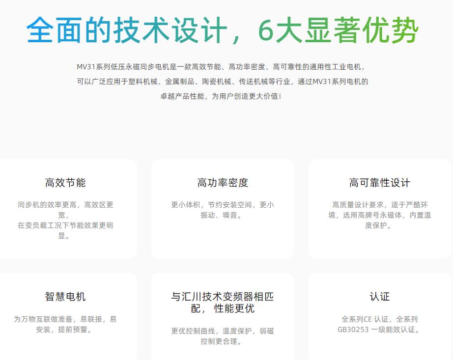MV31系列低压永磁同步电机是一款节能、高功率密度、高可靠性的通用性工业电机,可以广泛应用于塑料机械、金属制品、陶瓷机械、传送机械等行业。