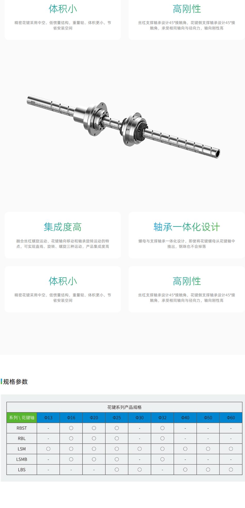 RBS系列滚珠花键滚珠丝杠是莱恩技术团队打造的运动复合类产品。可实现旋转、移动、螺旋运动的一种或多种运动,兼具高刚性、高精度保持性等优势。已广泛应用于水平多关节机器人、装配机器人、自动化产线等工业自动化领域。